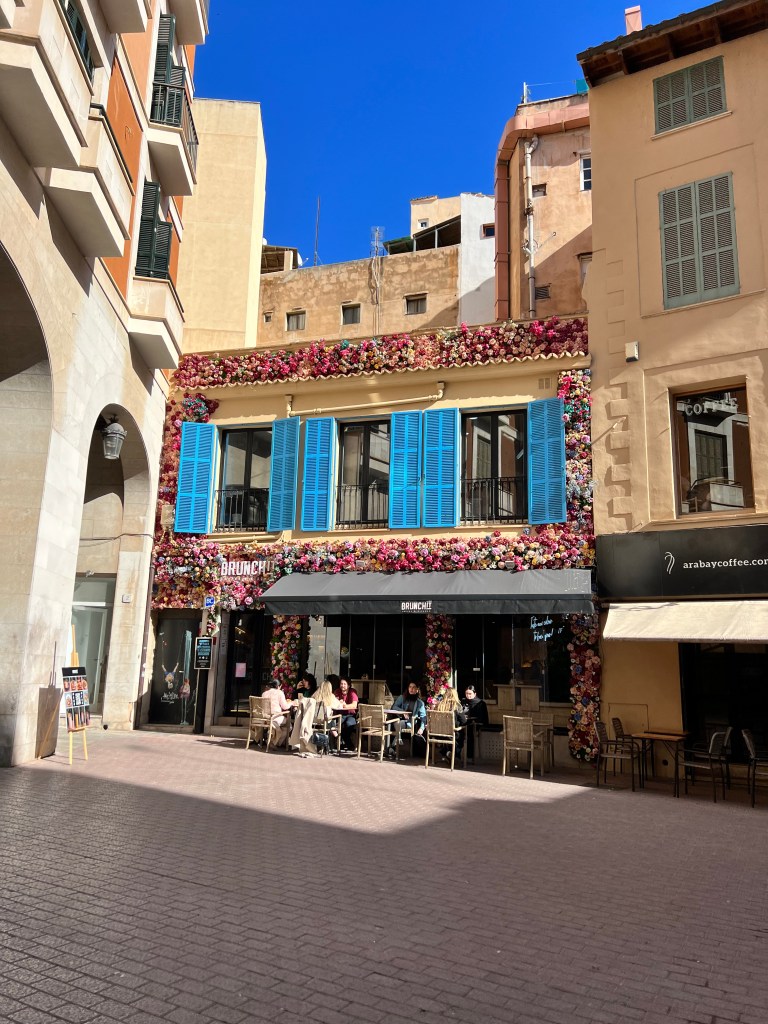 After checking in and getting settled, we headed out in hopes of finding brunch. We took the bus to downtown Palma and found a cute brunch place nearby, called BrunchIt. They had a bit of everything, we got pancakes, burgers, fries, croissants, and more. The outside of the restaurant was decorated with pretty flowers.