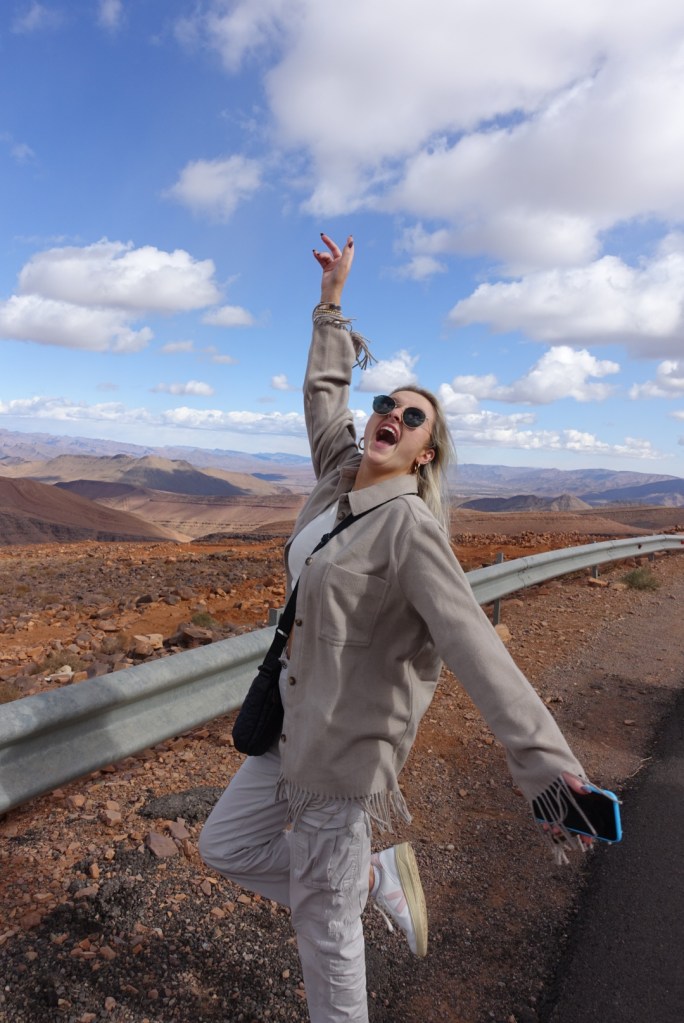 We got back on the road and headed towards Zagora and we still had around 3-4 hours left of the drive. Although this sounds like a lot, the cool views of the mountains made the drive enjoyable and we took in the views. Our bus driver was kind enough to make a quick stop on the side of the road so that we could appreciate the beautiful scenery on our way there. It was windy and hailing but that didn’t stop us from taking photos.