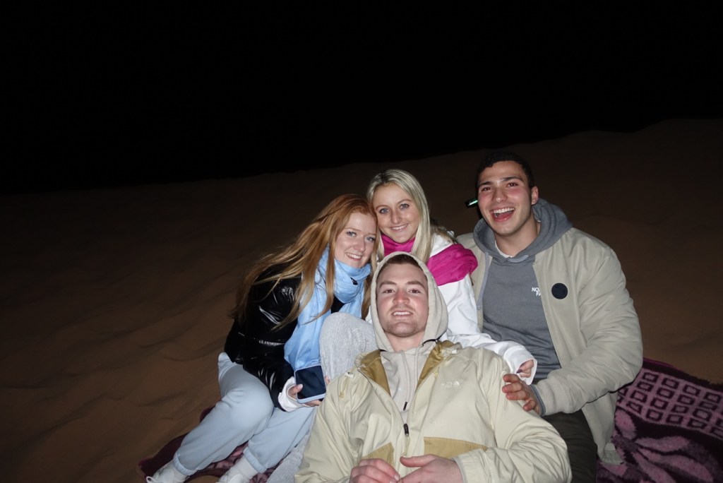 Finally, we made it! We arrived at the desert and loaded our bags onto the camels to start our trek to the camp. I was so nervous to hop on the camel because I was afraid I was going to fall off. The camel trek was one of the coolest things I’ve ever done. The sunset was beautiful and we trekked through the sand dunes and took so many amazing pictures and met so many people along the way.