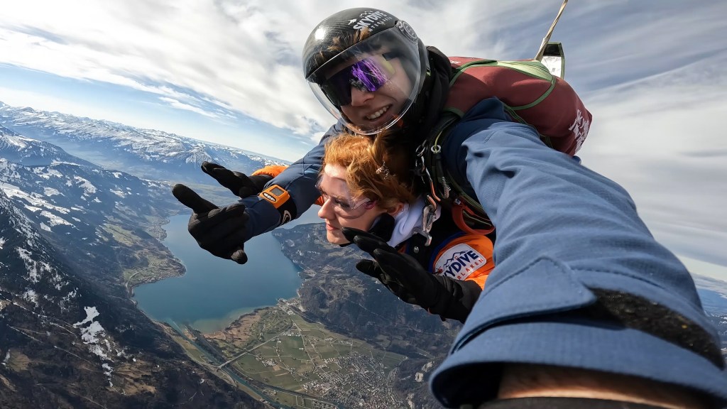 The next morning, we woke up and checked out of our airbnb and headed to Interlaken. The drive was 2 and a half hours long, where we just slept and took turns driving. The view during the drive was gorgeous, passing the lakes and mountains. We finally arrived in Interlaken just in time for our skydiving program to pick us up at our pick-up location. I was shaking with nerves and was feeling very anxious to skydive. We got to the skydiving place and signed various contracts and papers, and the skydiving instructor joked and said, “Come sign your life away!” Which was funny but definitely made my nerves even worse. After what felt like an eternity, we finally geared up and got onto the helicopter and started flying into the air. At this point, my brain couldn’t even process what was going on because I was so shocked that I was literally flying in a helicopter. Out of nowhere, the skydiving instructor swung the door open and a blast of cold air hit me in the face. Within seconds, I went from sitting inside the helicopter to standing on the ledge outside staring 16,000 feet below me. On the count of 3, we jumped out and were freefalling for 45 seconds before parachuting down for 9 minutes. This was all a blur. I couldn’t believe my eyes. It was one of the coolest things I have ever experienced.